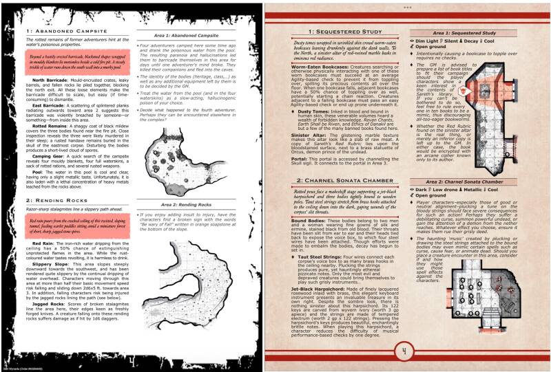 - Written for players: The content is written with the player experience in mind. Each area contains interesting features that beg to be interacted with, offering meaningful choices which impact the encounter and adventure.